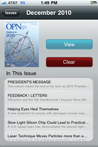 此裝置為免費下載,現在可透過 iTunes  獲得,讀者可連至 iTunes store 並搜尋 “OPN” 下載此裝置。OPN 是 OSA 許多期刊首先提供行動裝置下載服務,OSA 未來將繼續致力於提供更多其他期刊的行動閱讀技術。